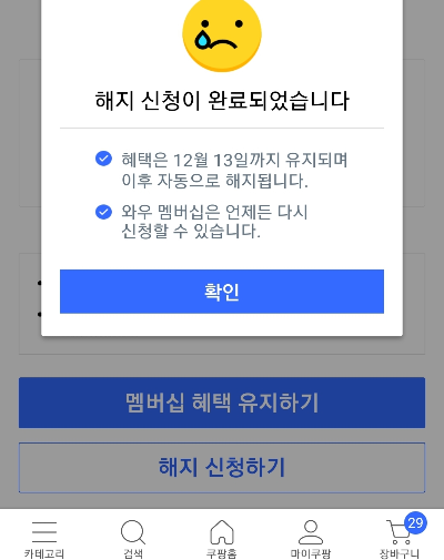 11월이라 월동준비 차 ?? 가입했던 쿠팡 멤버십을 해지 예약하면서 "로켓와우 멤버십 해지 방법"을 정리해둔다.