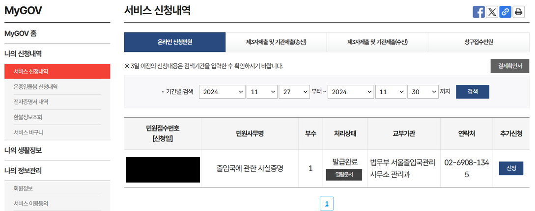 출입국사실증명서 발급 과정