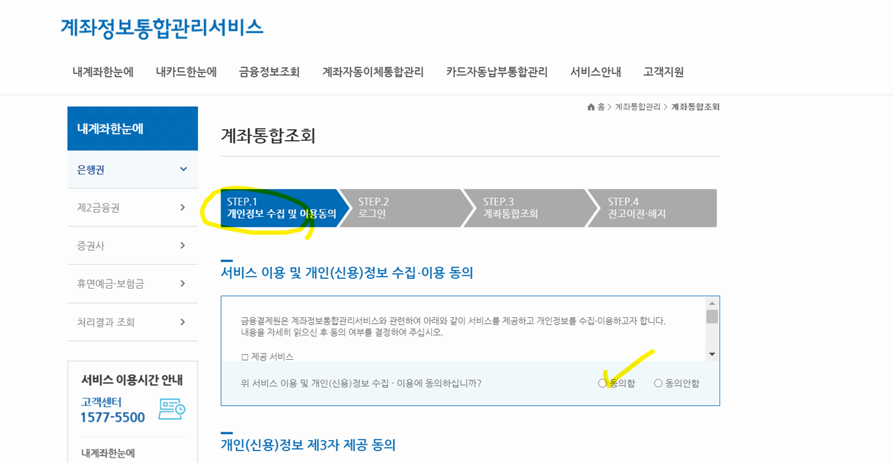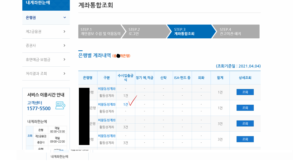 금융결제원에서 운영하는 <어카운트인포 서비스>를 이용하면