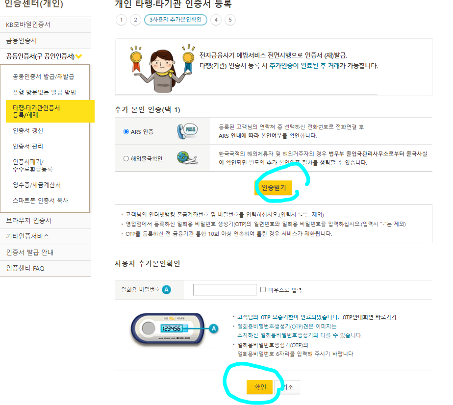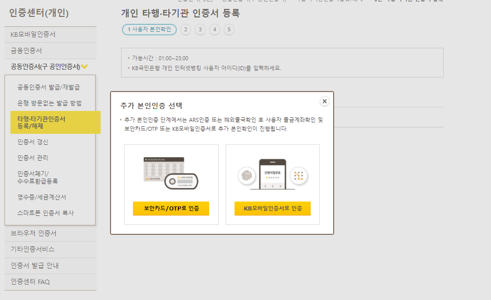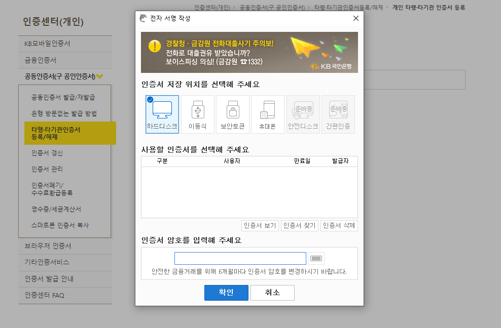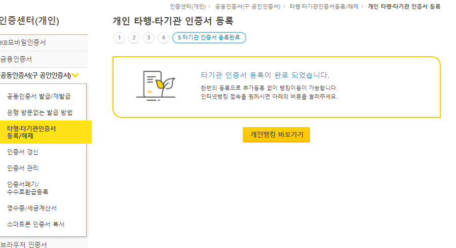 국민은행 인터넷뱅킹 타기관인증서 등록