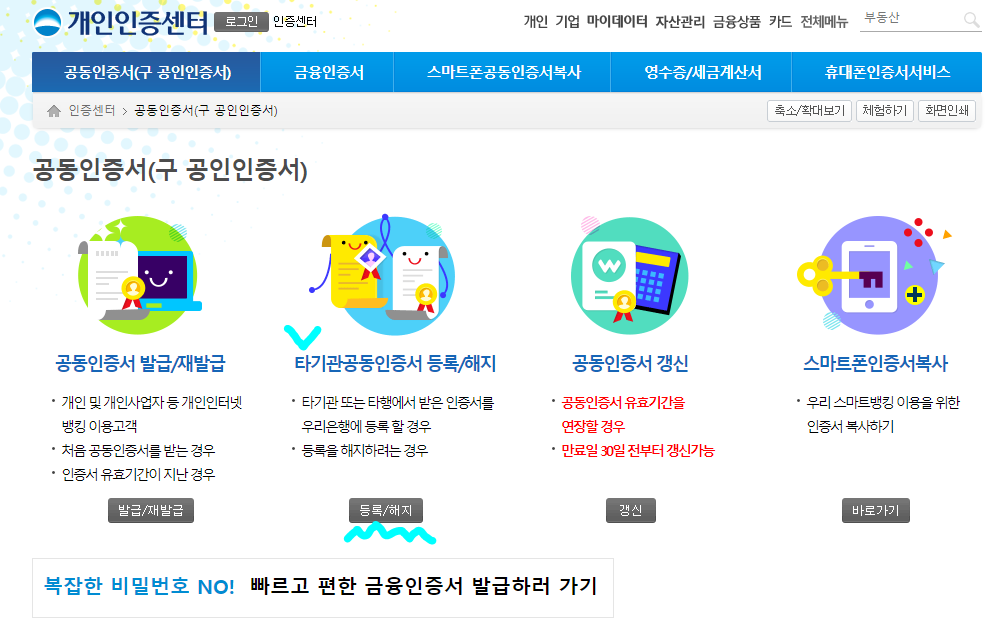 공동인증서를 갱신했으니 이용하는 각 은행들에 인증서를 등록한다.