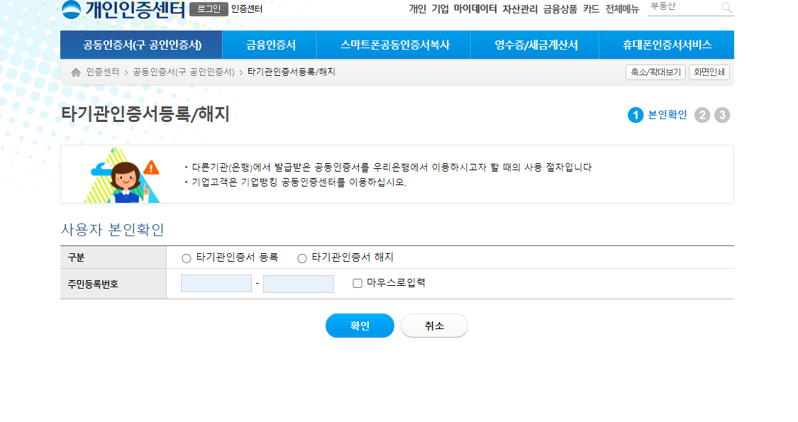 우리은행 인터넷뱅킹 타기관인증서 등록