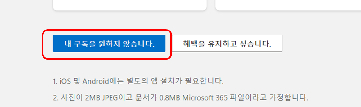추후 다시 마이크로소프트 365를 이용하고 해지할 수 있으니