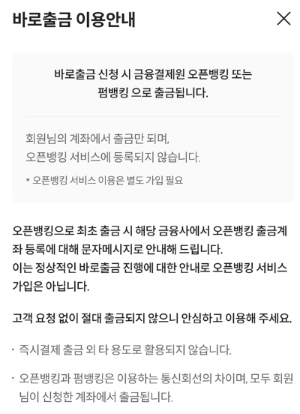 결제 대금을 결제일 전에 즉시 결제할 수 있는 '바로출금 서비스'를 발견.