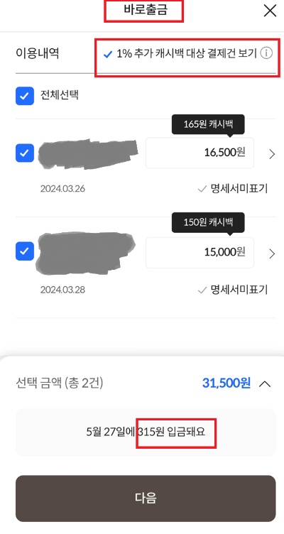 일찍 알았으면 바로출금을 좀 더 이용했을 텐데, 그래도 315원 겟 ㅎ