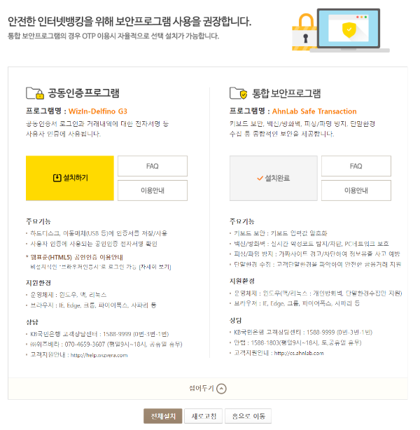 은행 웹사이트를 이용하려면 데스크탑에 각종 인증/보안 프로그램 설치가 필수고,
