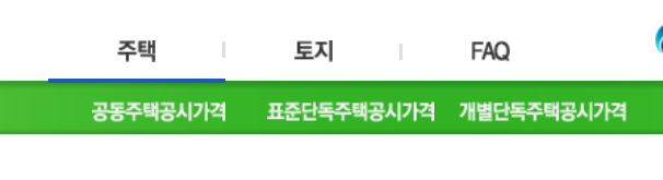 2. 상단 카테고리 중 "주택 > 공동주택공시가격" 클릭