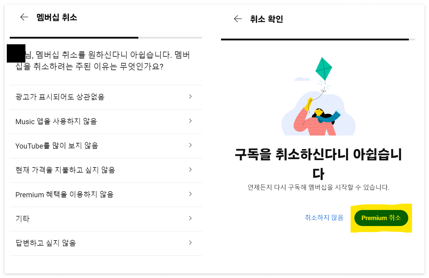 어느덧 3개월 기한이 다 되어 프리미엄 구독을 해지할 타이밍이 되었고..