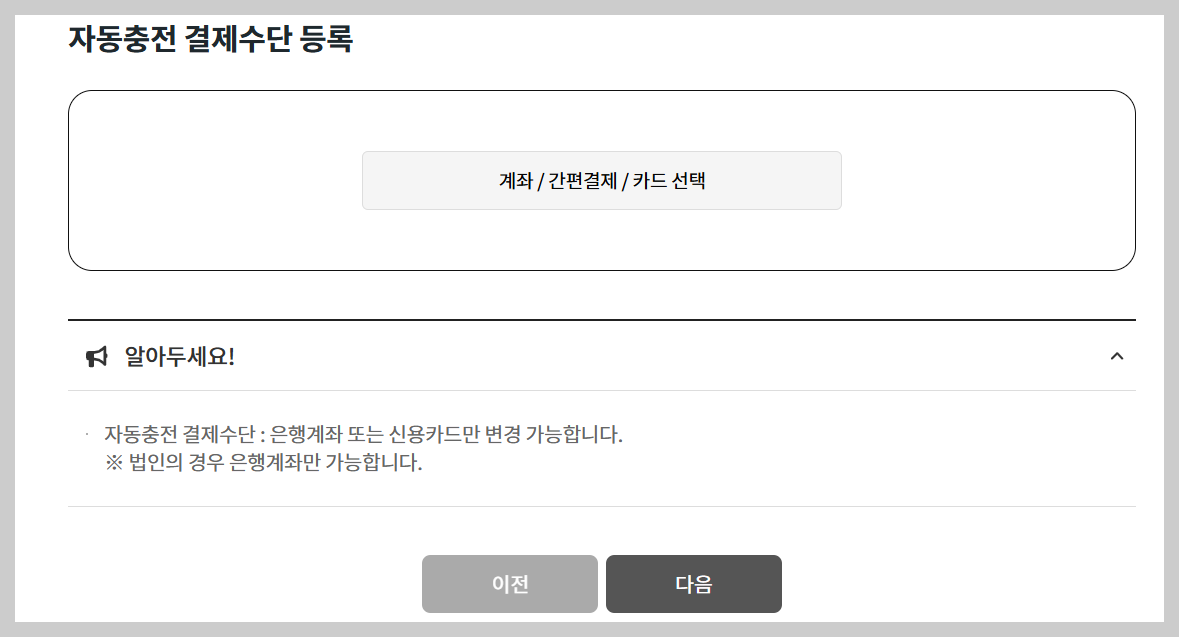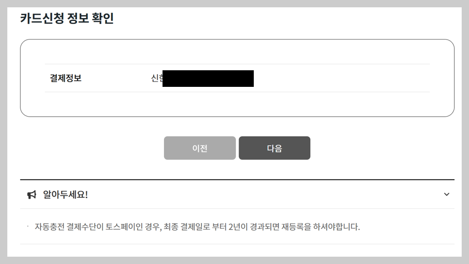 ★ 2회 이상 결제가 실패하면 카드 사용이 중지되오니 결제수단의 잔액을 먼저 확인해 주세요.